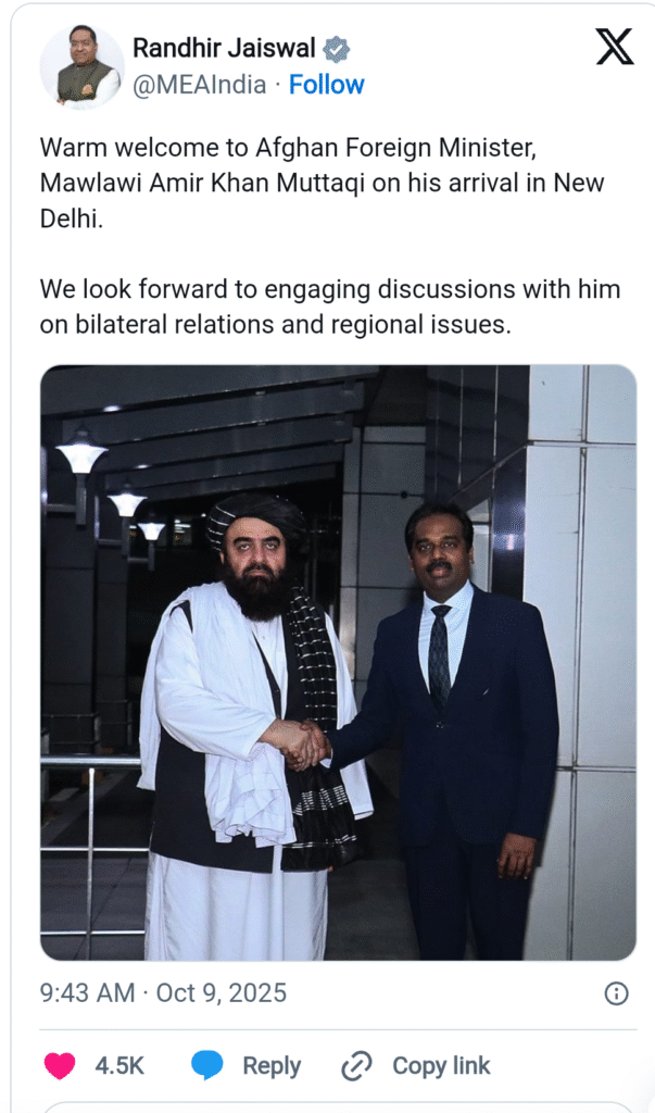ಭಾರತದ ವಿದೇಶಾಂಗ ಕಾರ್ಯದರ್ಶಿ ವಿಕ್ರಮ್ ಮಿಶ್ರಿ, ದುಬೈನಲ್ಲಿ ಅಫ್ಘಾನ್ ವಿದೇಶಾಂಗ ಸಚಿವ ಅಮೀರ್ ಖಾನ್ ಮುತ್ತಕಿ ಅವರನ್ನು ಭೇಟಿಯಾಗಿದ್ದರು. ಭಾರತವು ಅಫ್ಘಾನಿಸ್ತಾನಕ್ಕೆ ನೀಡುತ್ತಿರುವ ಮಾನವೀಯ ನೆರವು, ವಿಶೇಷವಾಗಿ ಆರೋಗ್ಯ ವಲಯವನ್ನು ಬಲಪಡಿಸುವುದು ಮತ್ತು ನಿರಾಶ್ರಿತರ ಪುನರ್ವಸತಿಯನ್ನು ಬೆಂಬಲಿಸುವ ಬಗ್ಗೆ ಚರ್ಚೆ ನಡೆಸಲಾಗುತ್ತಿದೆ.